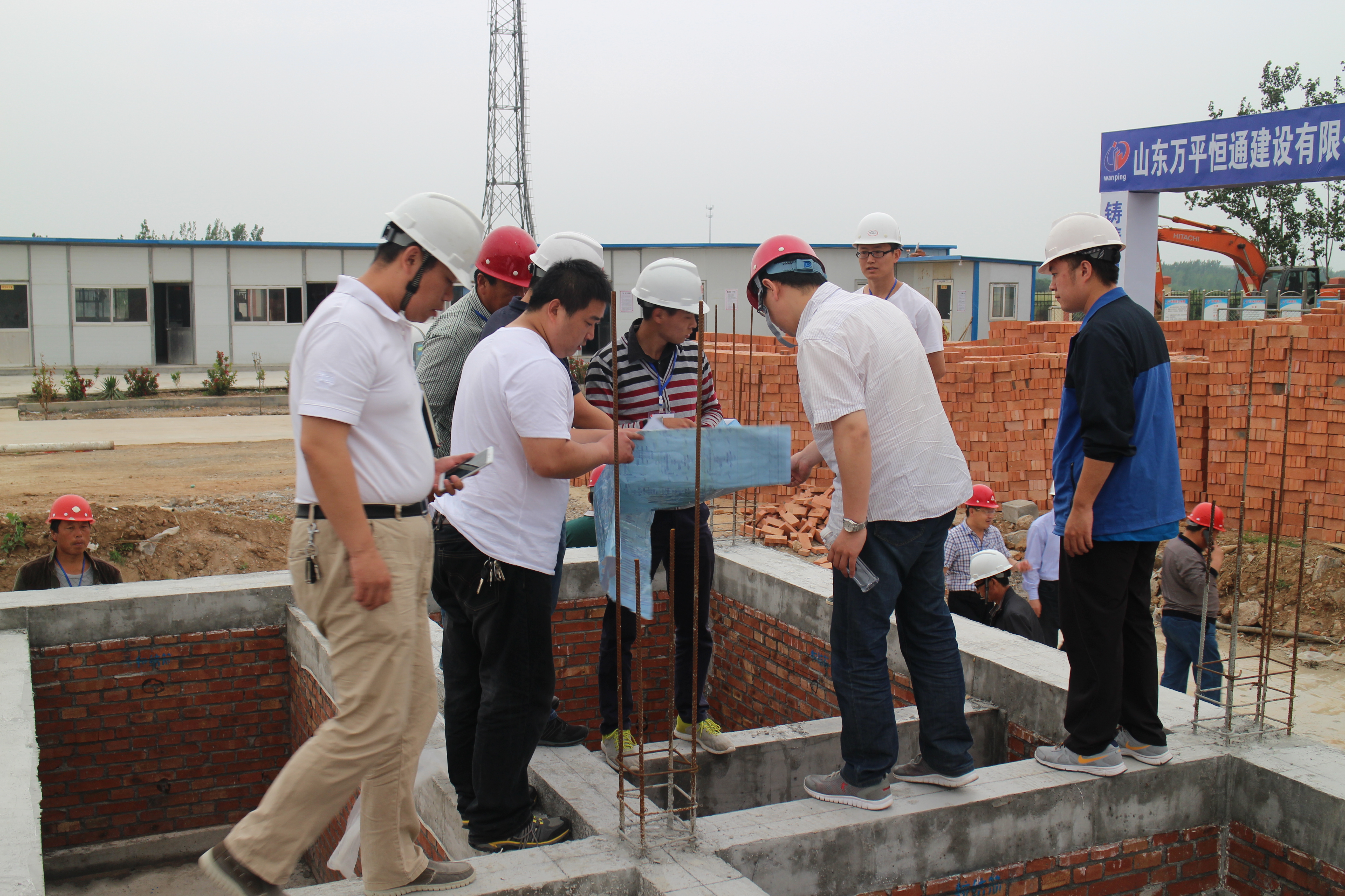 在章丘市质监站的监督下,对5#学生公寓基础工程进行现场验收。