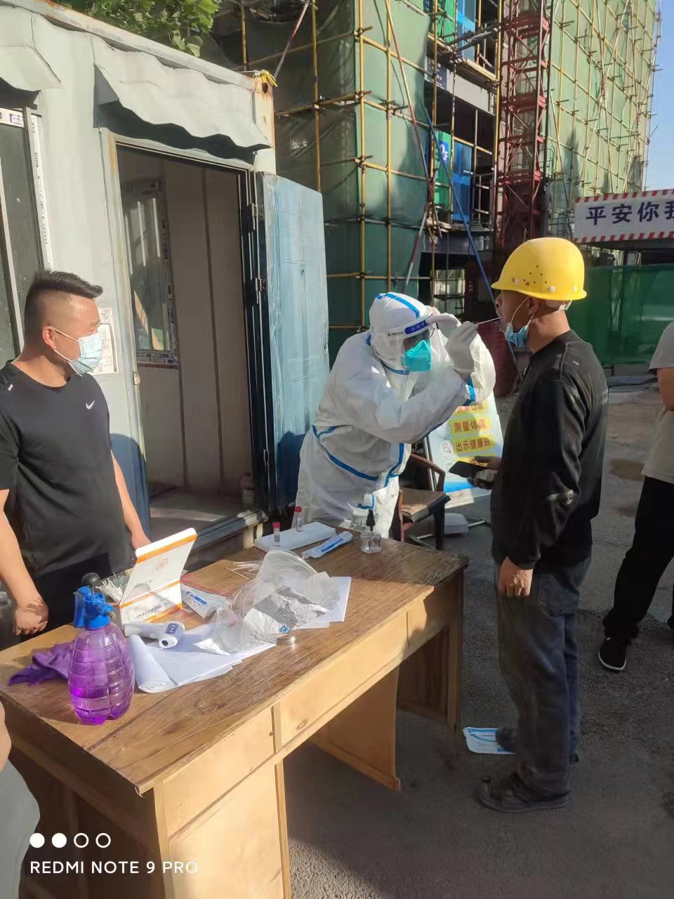 5月28日,为认真贯彻落实疫情防控工作重要指示,严防疫情扩散,齐鲁师范学院9#学生公寓楼A座工地现场根据上级要求,进行核酸检测一周三测,接到通知后,基建处领导立即开展部署工作,党员同志冲锋在前,顺利有序完成检测任务。