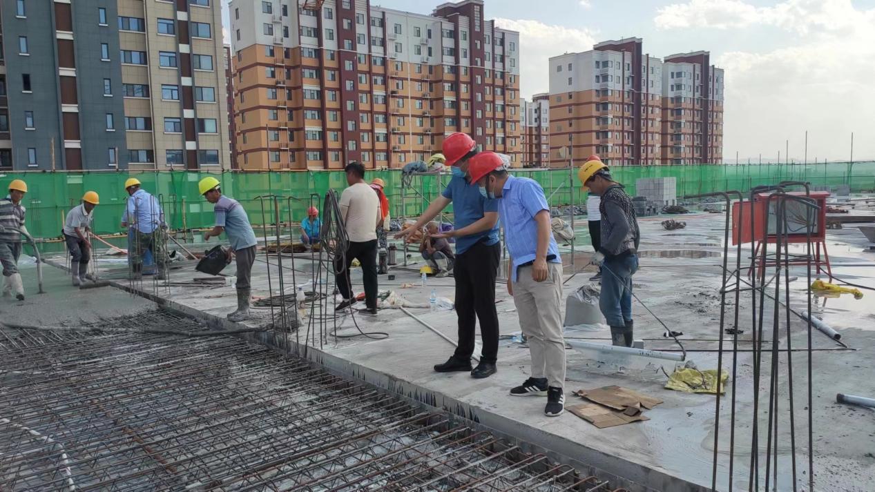 在学校党委、行政的正确领导和各部门的大力支持下,学校9#学生公寓楼A座于6月6日顺利封顶。基建处长马维军进行现场指导,并代表学校领导对施工人员进行慰问。