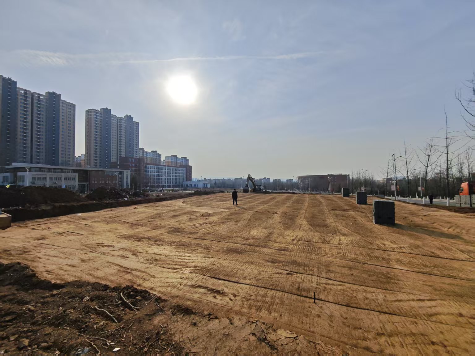 齐鲁师范学院东区 1#、东区 4#-5#学生公寓建设项目位于东区的学生生活区内,东区1#学生公寓北邻绿化用地、东邻后勤及附属用房、南邻办公楼、西邻东区4#学生公寓;东区4#学生公寓北邻、西邻文脉湖、东邻东区1#学生公寓、南邻东区5#学生公寓;东区5#学生公寓北邻东区4#学生公寓、东邻后勤楼、南邻东区6#学生公寓、西邻文脉湖。总建筑面积28000 ㎡,地下1层,地上6层。计划开工日期3月10日,计划竣工日期2026年5月11日,合同施总工期共428天。现项目正在进行三通一平工作,施工期间请各位师生绕行,给各位老师和同学们带来了不便,敬请谅解。